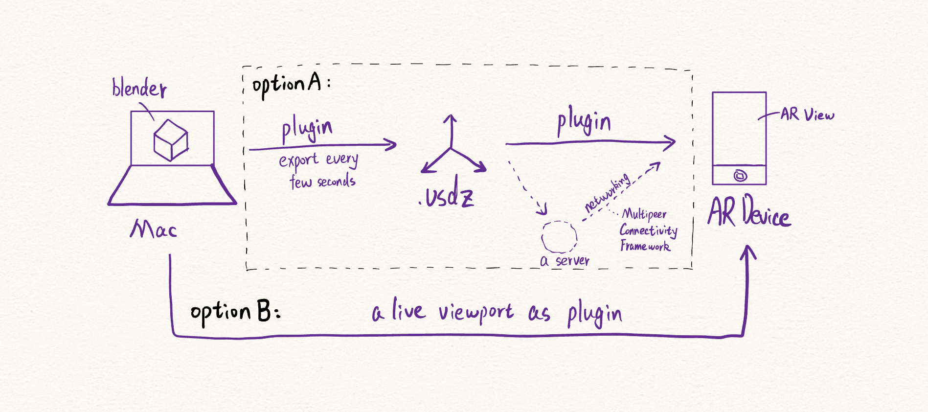 Picture this: you’re modeling on your computer, and there’s a large iPad next to you with its camera on, aimed at the scene that fits your product, like your desk. It displays your model synced in real-time, turning the iPad into a live AR viewport. This way, you maintain your workflow efficiency and save a ton of time.