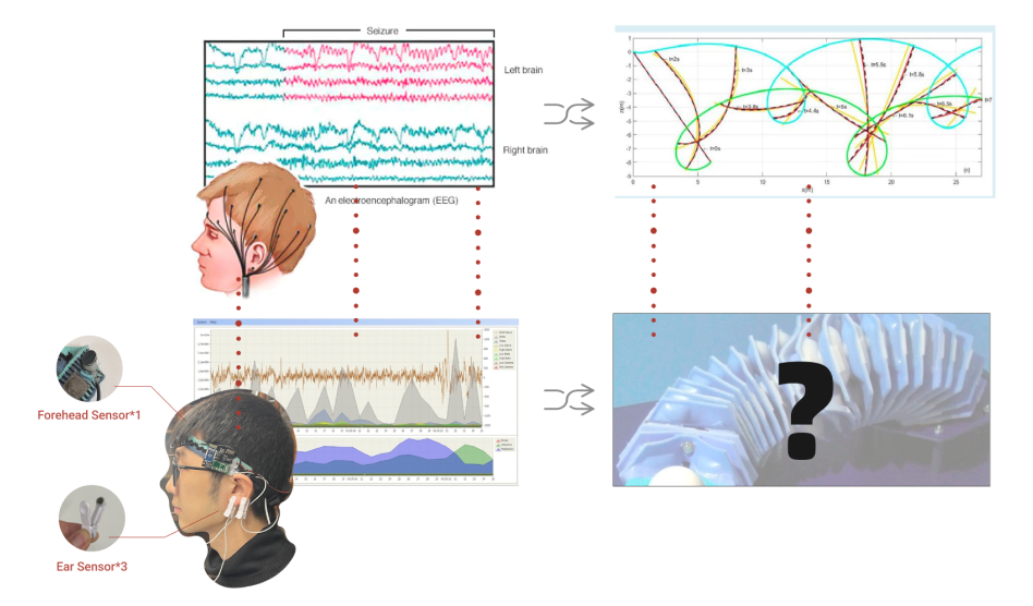 We found a abstract parallel between the EEG graph patterns and the movement graph patterns of soft robots. This sparked our interest in developing a mind-controlled robotic system. From there, we started to envision a system with some simple mind-to-robot projections.